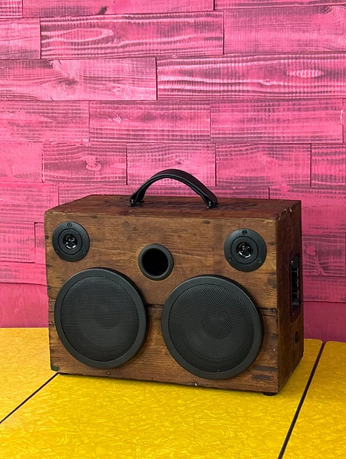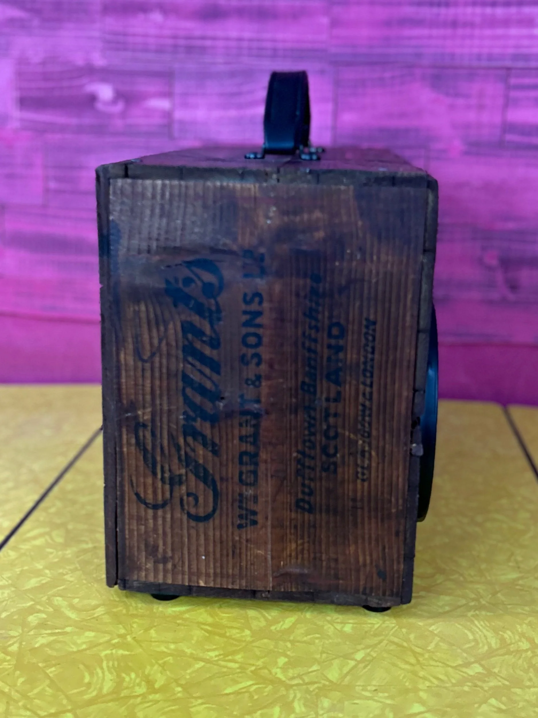 Vintage Grant’s whiskey crate boombox. Looks awesome and sounds amazing!